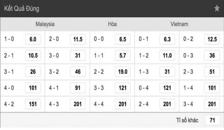 Tỷ lệ đặt cược sẽ phụ thuộc vào mỗi nhà cái khác nhau, thông thường tỷ lệ này thưởng ở mức x5 đến x6 lần tiền đặt cược ban đầu.